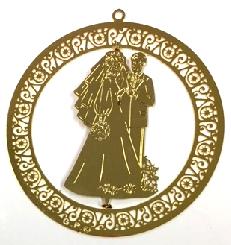 Wedding Ornament - gold couple with intricately lettered frame $28.00