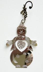 Snowman with dangling heart - silver $19