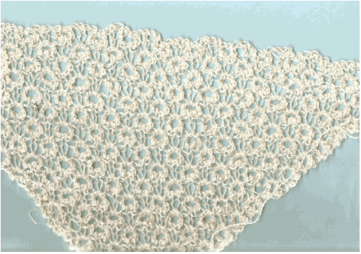 Swatch of the Birdseye pattern for a small shawl. Unblocked. Size 3 needle, Zephyr laceweight silk and wool yarn in Vanilla.