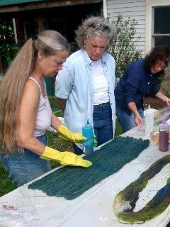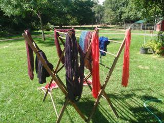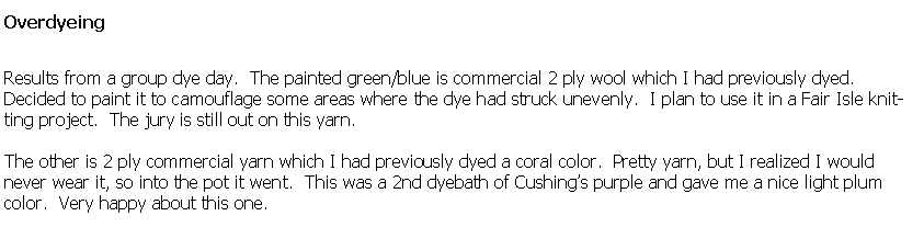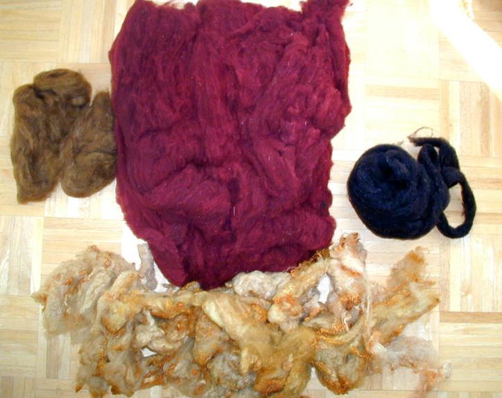 Coming soon! Just sent this assortment of fiber off to Pogo, at Friends Folly Farm, for blending. There's enough here for a sweater for me, and I'm envisioning a tweedy sort of yarn, so asked for minimum color blending. Maroon wool has already had one pass through my hand carder (this was a mystery fleece, probably dorset or other meat breed), black shetland roving, romney fleece, dyed with Cushing gold, and some brown silky mohair roving. Can't wait to see the results! I plan to spin a 2 ply yarn for a cardigan.