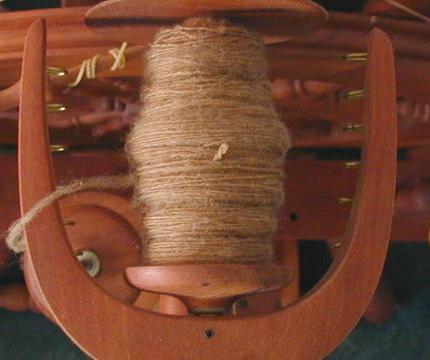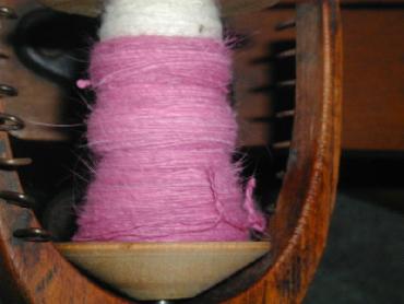 This beautiful shade of moorit Shetland lamb on my Jensen wheel. It's spinning up into a fine, lofty singles which will be nice for a pair of mittens. 23 wpi. This fiber was sent to me by a my friend, Julia, in England. It has very different characteristics from the Shetland I've found here in the U.S. and I like it a lot!
