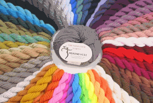 Trendsetter Yarns Merino8A beautiful 8 ply worsted weight yarn in a large choice of colors.100% Superfine Merino Wool50 grams, +/- 95 yards18 sts = 4" on #8 U.S. NeedleSPECIAL PRICE $110 for a bag of 10 of one color
